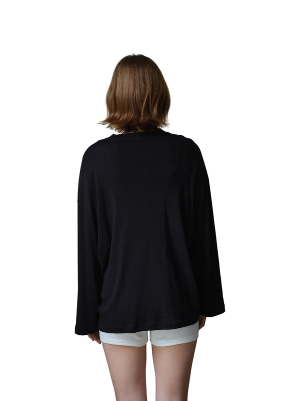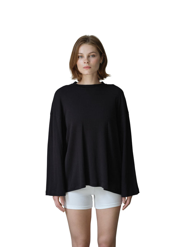 Oversized long sleeve tee with kimono style sleeves.